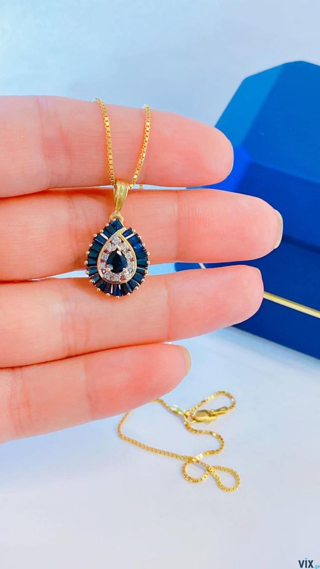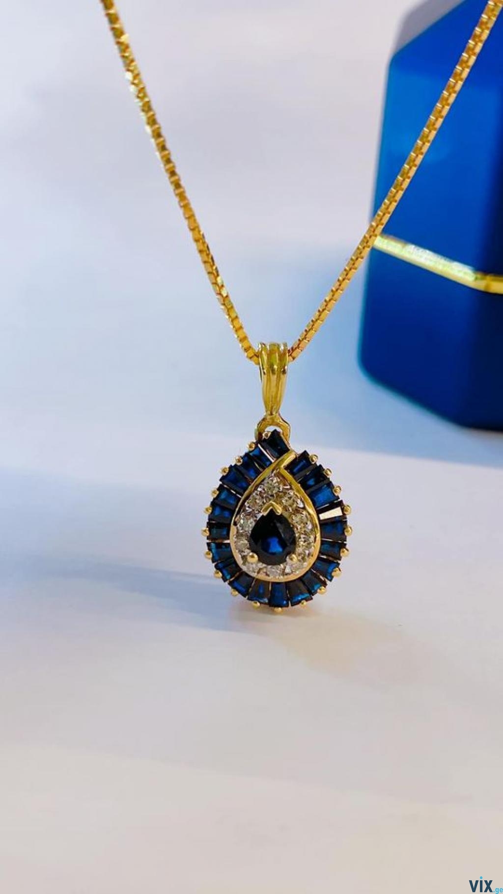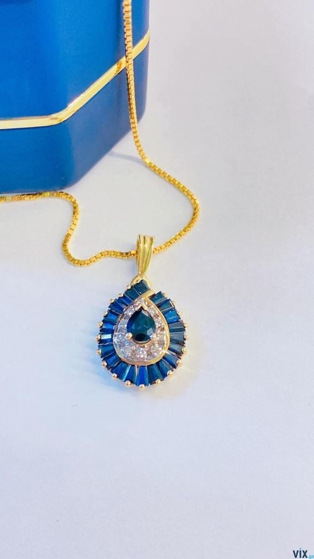 ოქროს ცეპი კულონით, 14k (585)სინჯი, ბრილიანტებით და ბუნებრივი საფირებით, 6 გრამი (ერთად) საფირები ჯამში ერთი კარატი, უხარვეზო. 1750 ლარ