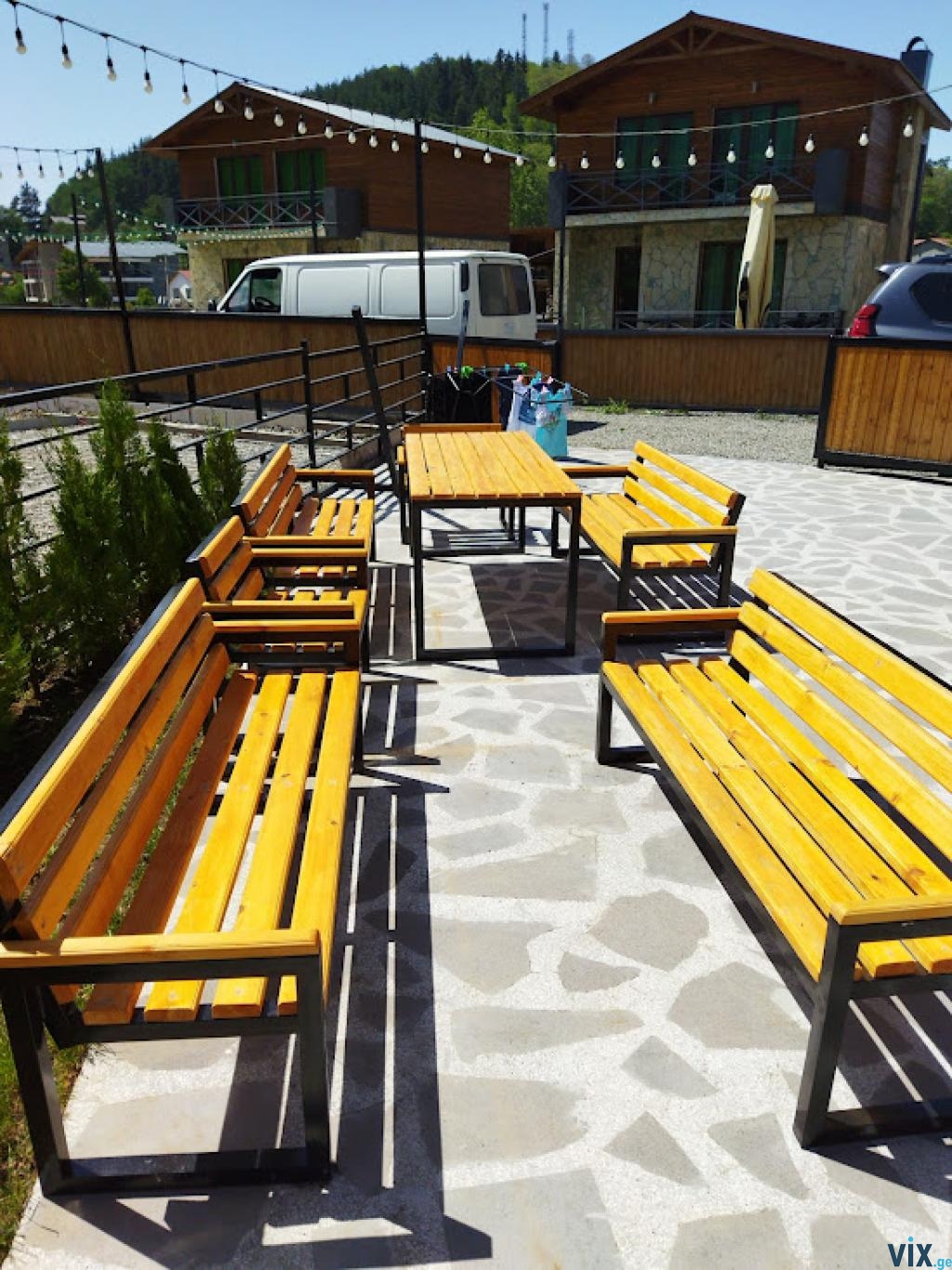 ხის მასალა: გამომშრალი ფიჭვი დამუშავებული თანამედროვე სტანდარტებით ტენიანობა არ აღემატება 11 %-ს, ზედაპირი დამუშავებულია თხევადი მაკაგონით რომელიც გაჟღენთილია ხეში და არ იკარებს წყალს რის საშუალებითაც გამოირჩევა მრავალწლიანი გამძლეობით.